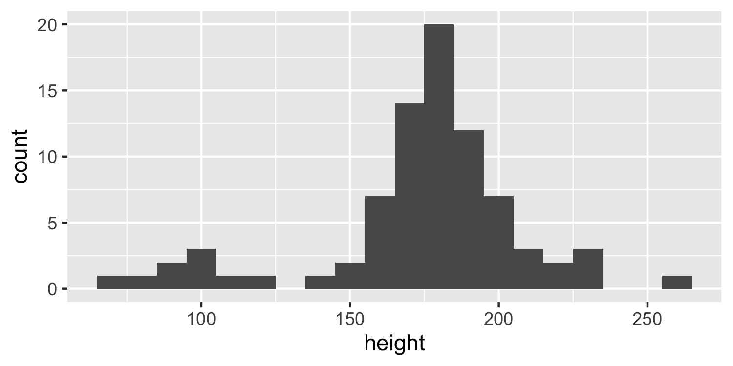 ggplot(data = starwars, mapping = aes(x = height)) + geom_histogram(binwidth = 10)