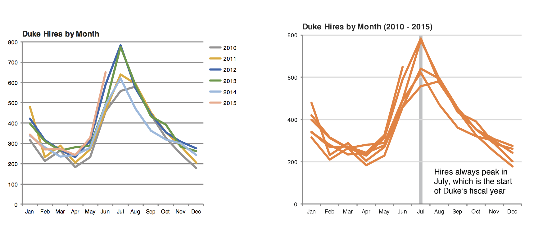 Which plot is more useful for visualizing the relationship between hair color and eye color? Why?